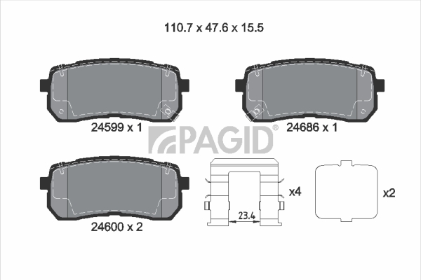 PAGID T2383N - Sada brzdových destiček, vždy 4 kusy v sadě