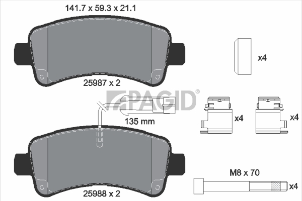 PAGID T2499N - Sada brzdových destiček, vždy 4 kusy v sadě