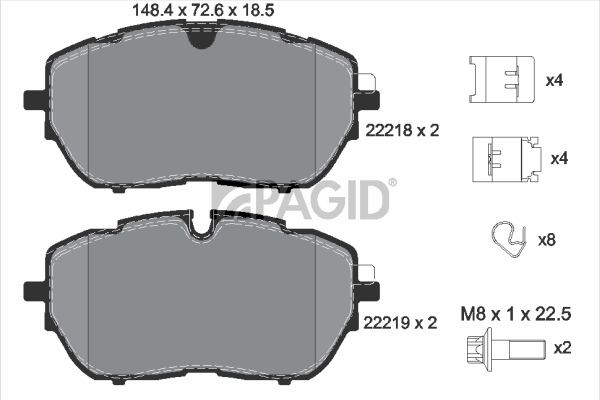 PAGID T2523N - Sada brzdových destiček, vždy 4 kusy v sadě