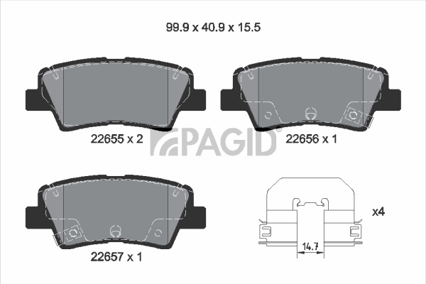 PAGID T2696N - Sada brzdových destiček, vždy 4 kusy v sadě