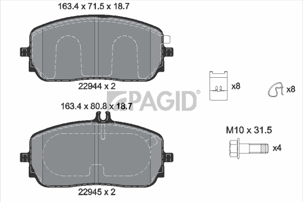 PAGID T2799N - Sada brzdových destiček, vždy 4 kusy v sadě