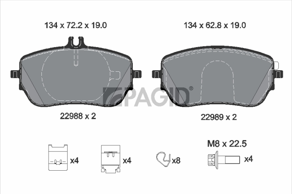 PAGID T2800N - Sada brzdových destiček, vždy 4 kusy v sadě