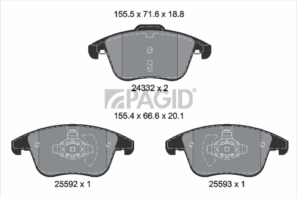 PAGID T2801N - Sada brzdových destiček, vždy 4 kusy v sadě