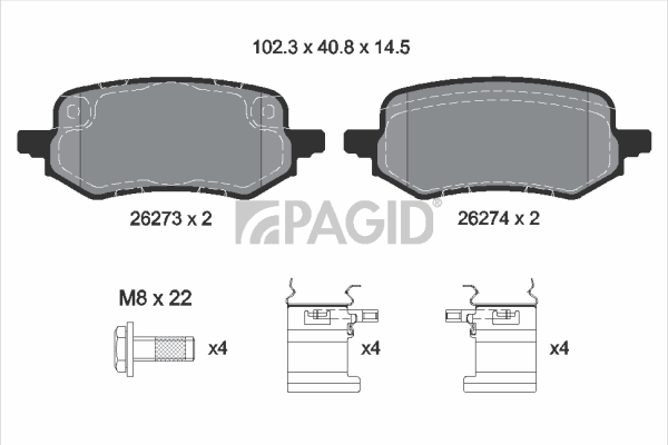 PAGID T2896N - Sada brzdových destiček, vždy 4 kusy v sadě