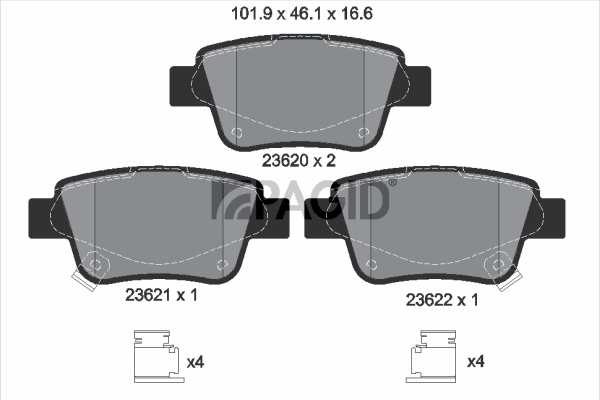 Sada brzdových destiček, vždy 4 kusy v sadě