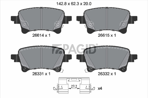 PAGID T3185N - Sada brzdových destiček, vždy 4 kusy v sadě