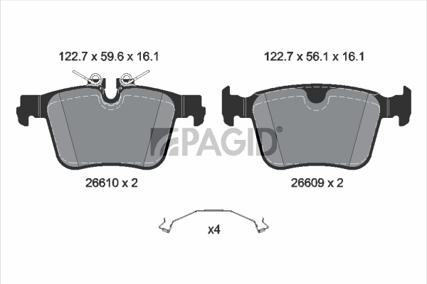 PAGID T4259N - Sada brzdových destiček, vždy 4 kusy v sadě