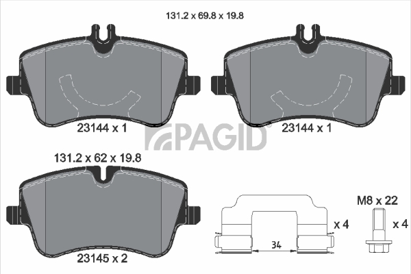PAGID T5111N - Sada brzdových destiček, vždy 4 kusy v sadě