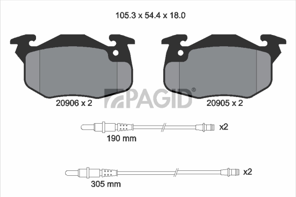PAGID T9029N - Sada brzdových destiček, vždy 4 kusy v sadě