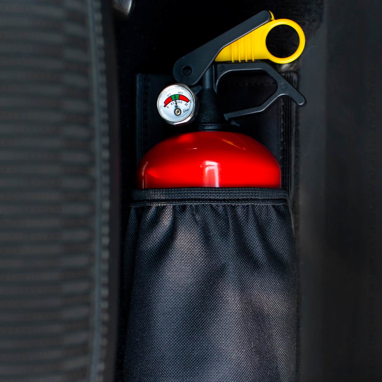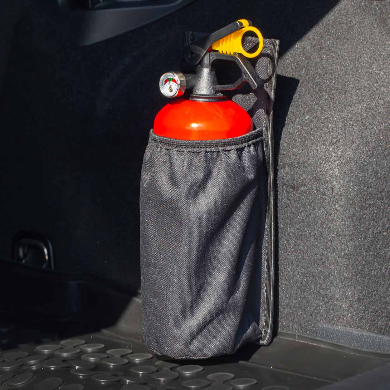 PEVNý DRŽáK K PŘEPRAVĚ HASíCíHO PŘíSTROJE V AUTU Držák na hasicí přístroj je rychlý a pohodlný způsob ochrany hasicího přístroje ve vašem autě. Vyrobeno z voděodolného materiálu a široké polyesterové pásky na suchý zip. Velký povrch na suchý zip poskytuje perfektní držení převáženého hasicího přístroje. Použité materiály umožňují instalaci kdekoli na čalounění bez vrtání. Díky našemu držáku můžete hasicí přístroj bezpečně přepravovat v kufru vašeho auta! Silný suchý zip drží hasicí přístroj pevně a nepohybuje se v kufru! Rozměry krytu: Výška: 27,5 cm šířka: 10,5 cm Vhodné pro všechny 1 kg hasicí přístroje. Hlavní výhody soupravy: kompaktní velikost soupravy voděodolný materiál potahu montáž bez nářadí velká kontaktní plocha s čalouněním stabilita a bezpečnost přenášeného hasicího přístroje vyrobeno v Polsku