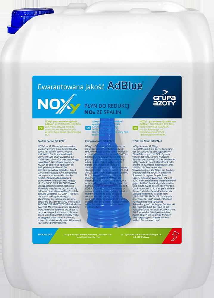 AdBlue® je synteticky vyrobený 32,5 procent roztok močoviny. Výrobek je čirý, netoxický, šetrný k životnímu prostředí a snadno ovladatelný. AdBlue® podle normy ISO 22241 je vysoce čistící činidlo redukující NOx u vznětových motorů s katalyzátorem SCR, které je používáno v souladu s emisními normami EURO 4, 5 a 6