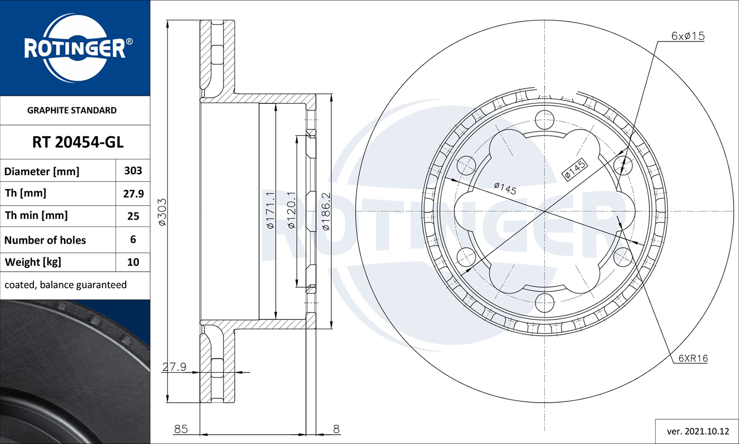ROTINGER RT 20454-GL - Brzdový kotouč