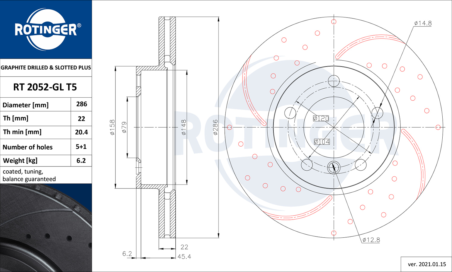 ROTINGER RT 2052-GL T5 - Brzdový kotouč