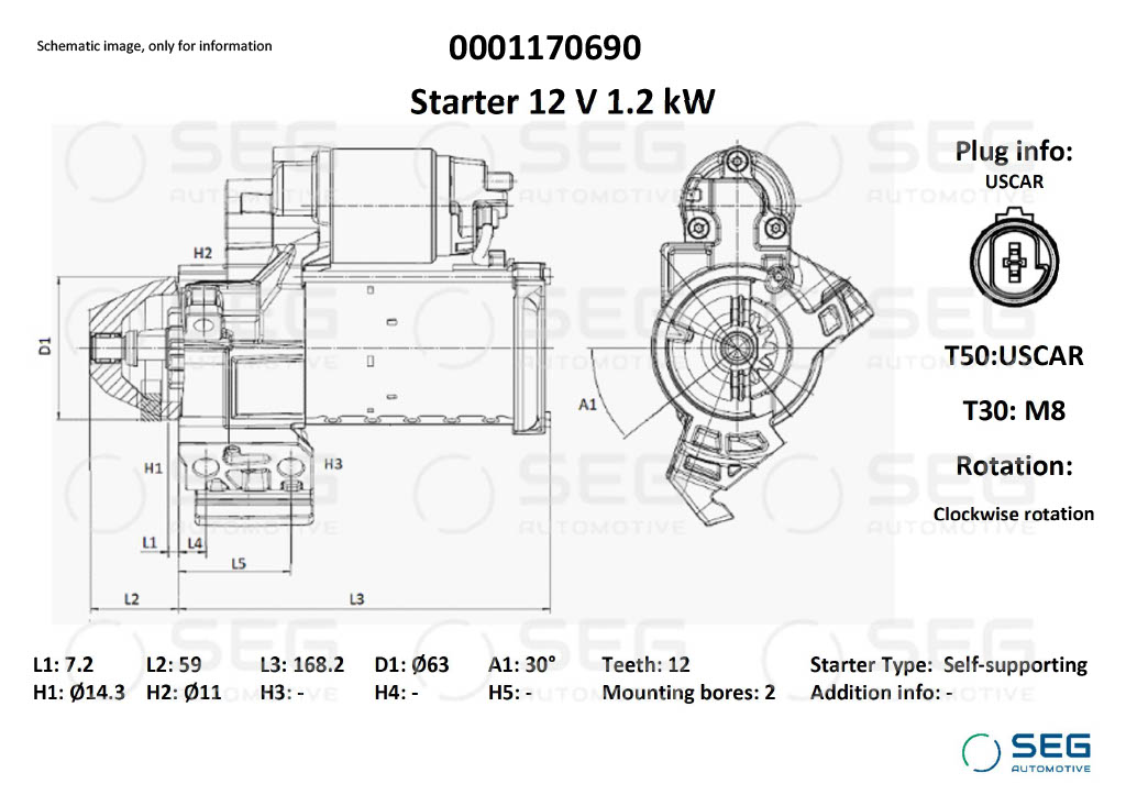 SEG Automotive 0001170690 - Startér