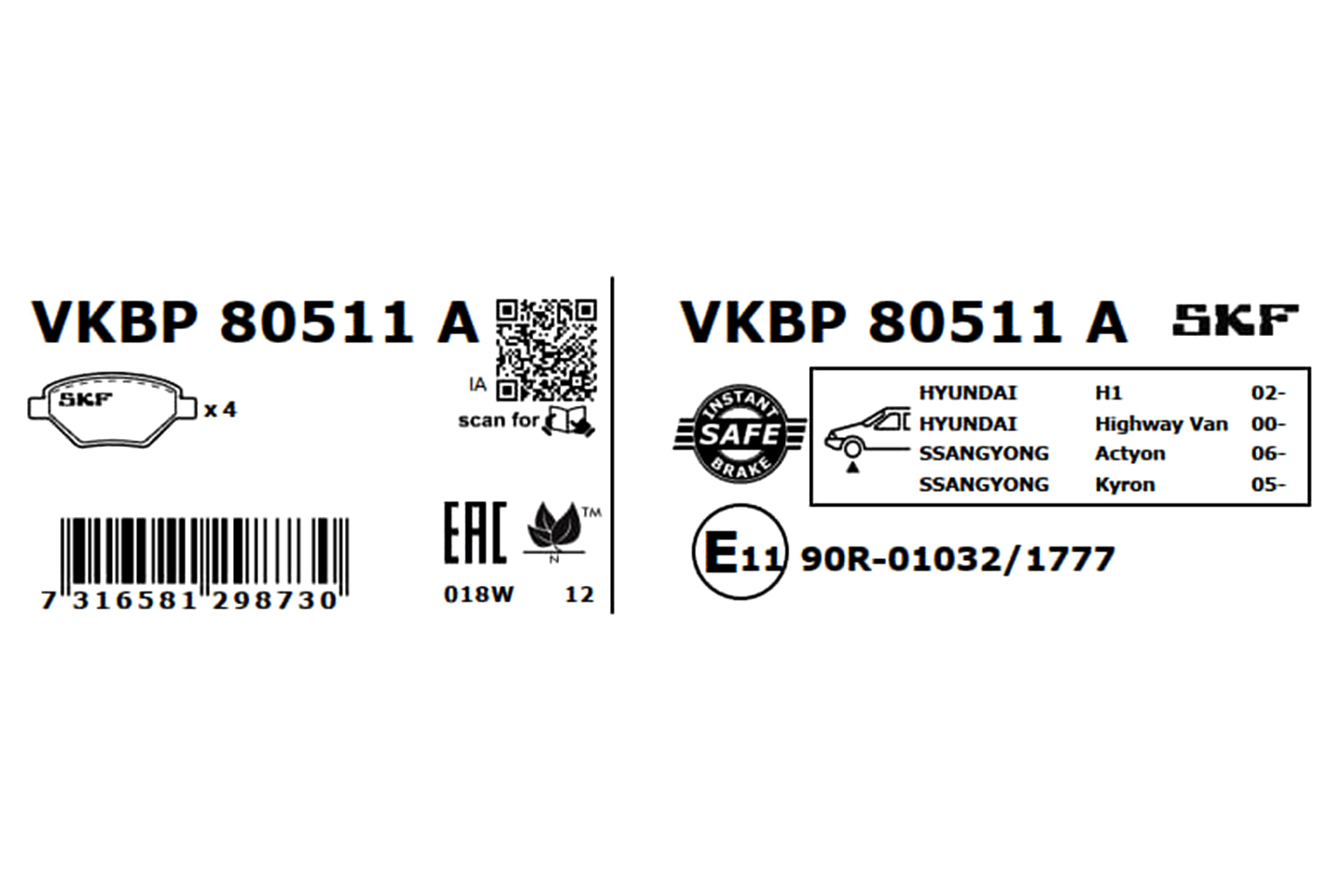 SKF VKBP 80511 A - Sada brzdových destiček, vždy 4 kusy v sadě
