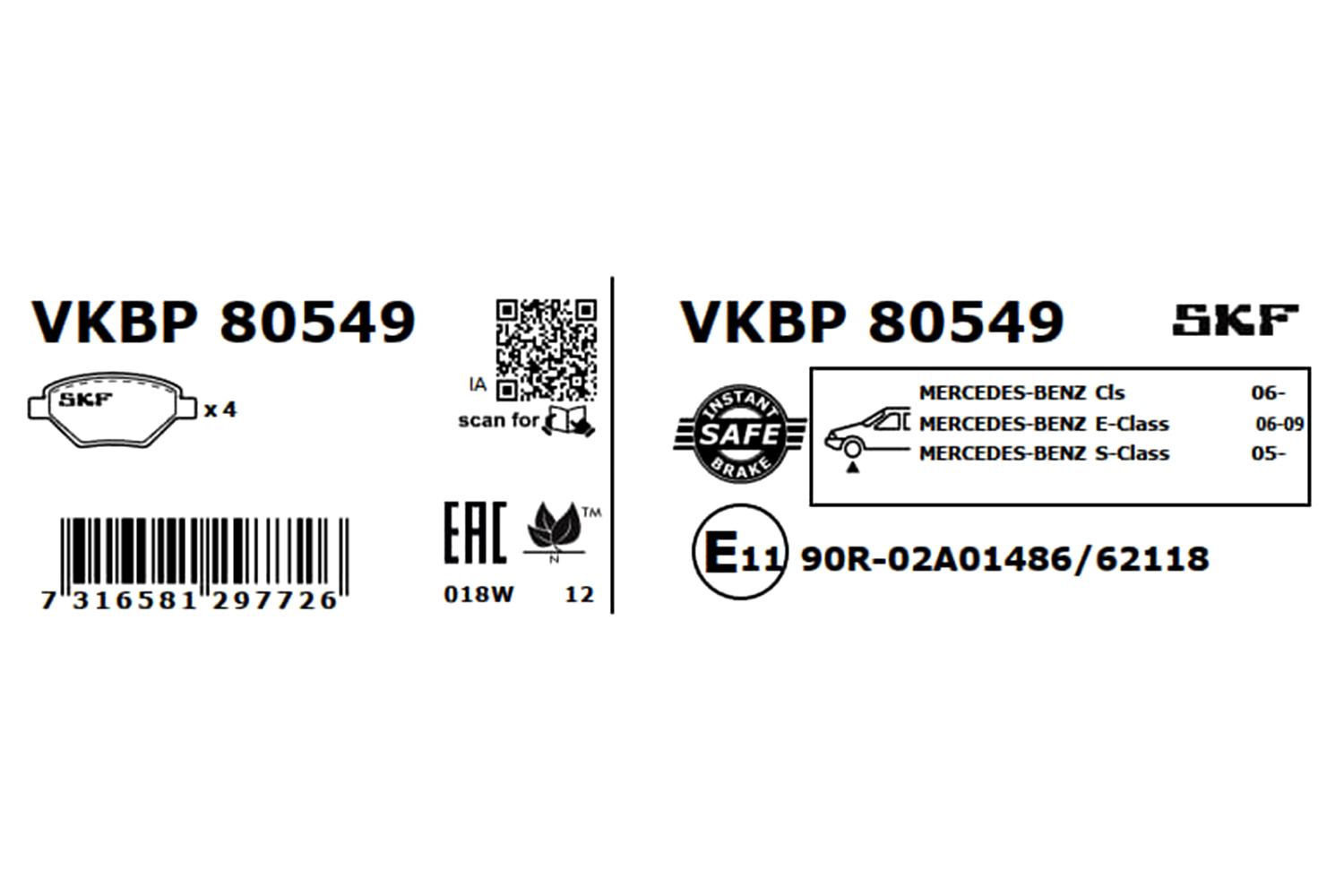 SKF VKBP 80549 - Sada brzdových destiček, vždy 4 kusy v sadě