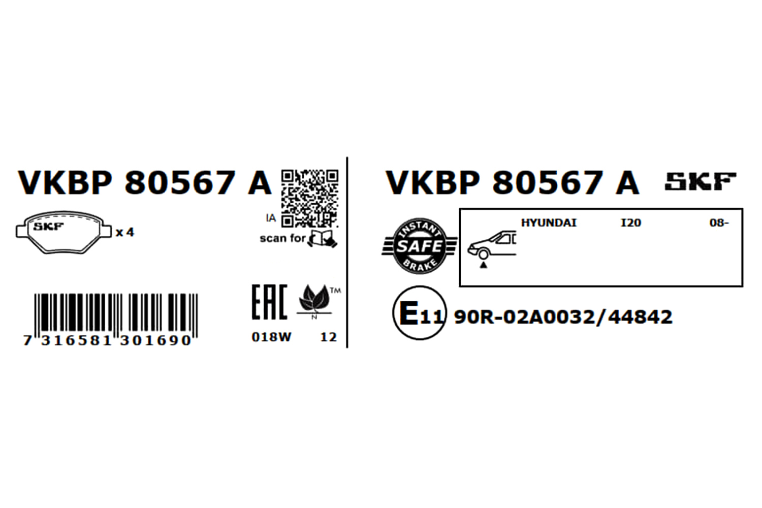 SKF VKBP 80567 A - Sada brzdových destiček, vždy 4 kusy v sadě