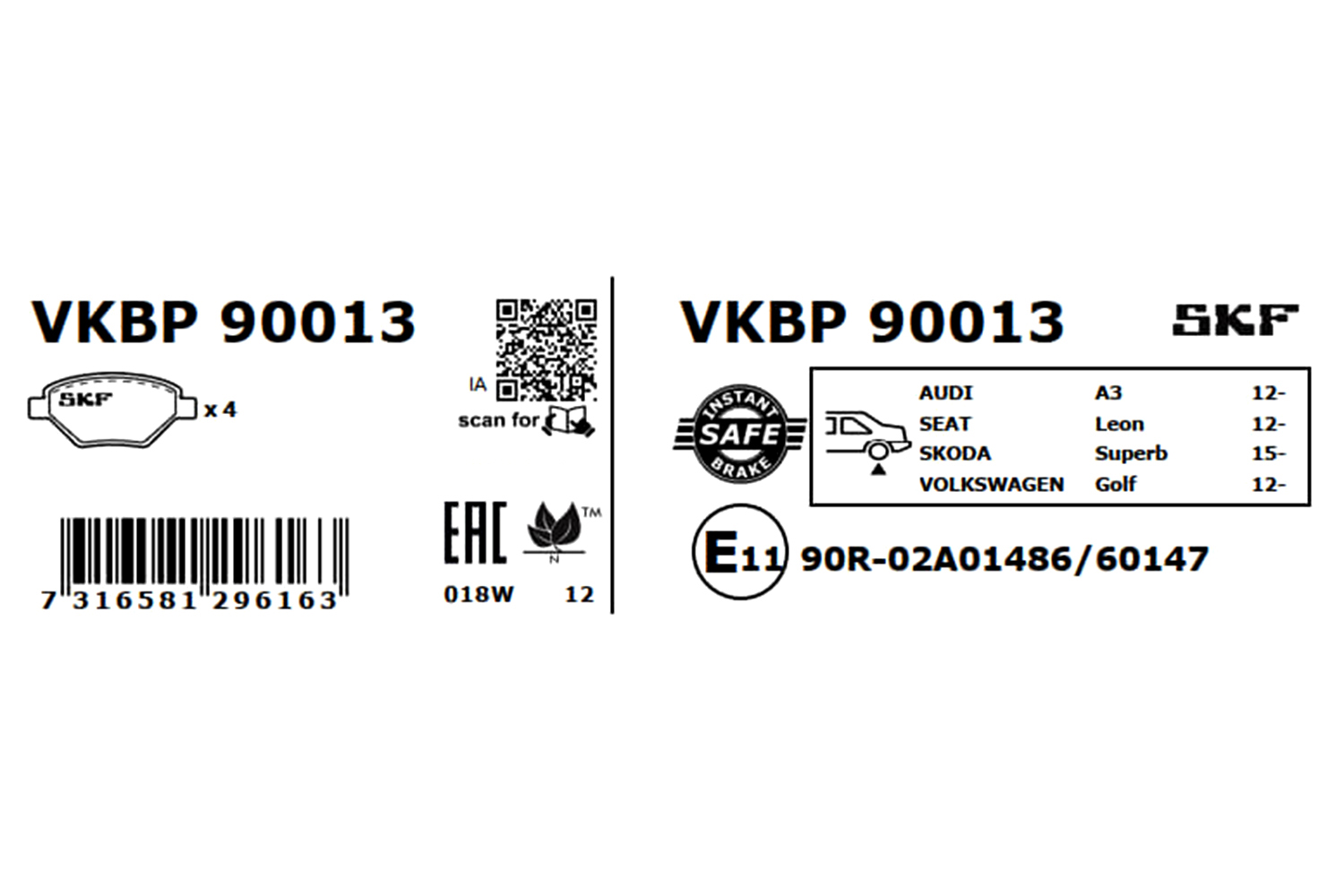 SKF VKBP 90013 - Sada brzdových destiček, vždy 4 kusy v sadě