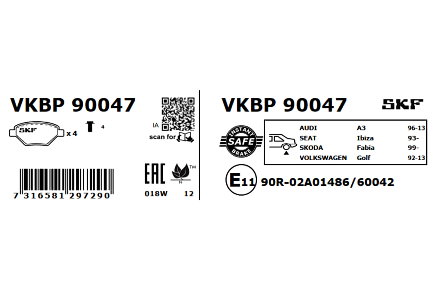 SKF VKBP 90047 - Sada brzdových destiček, vždy 4 kusy v sadě