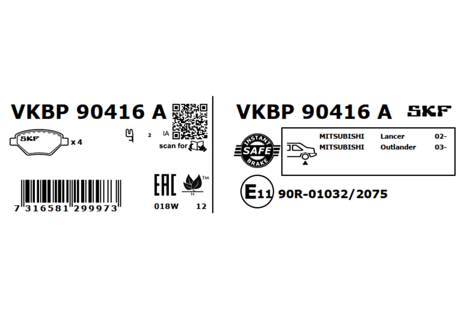 SKF VKBP 90416 A - Sada brzdových destiček, vždy 4 kusy v sadě