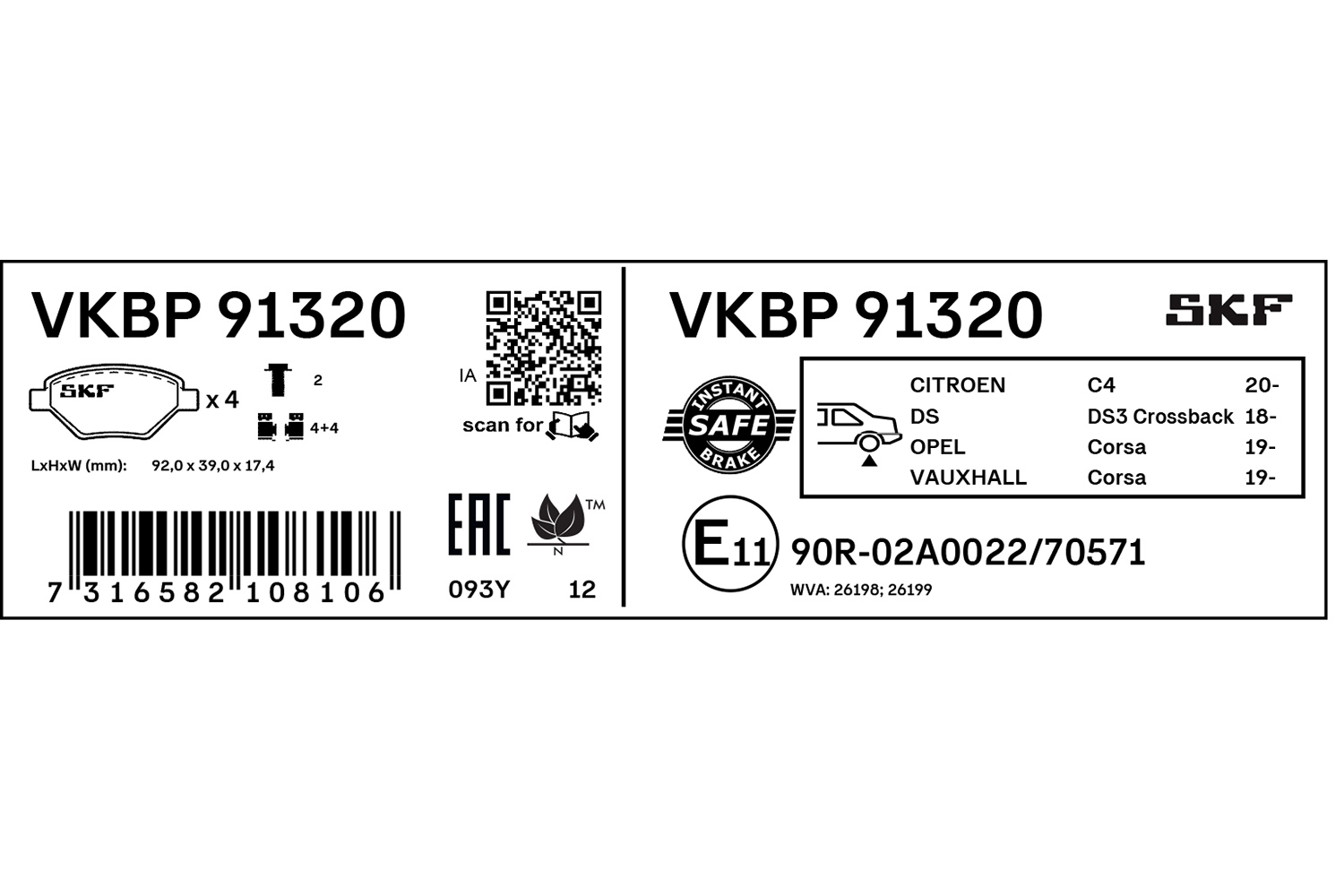 SKF VKBP 91320 - Sada brzdových destiček, vždy 4 kusy v sadě