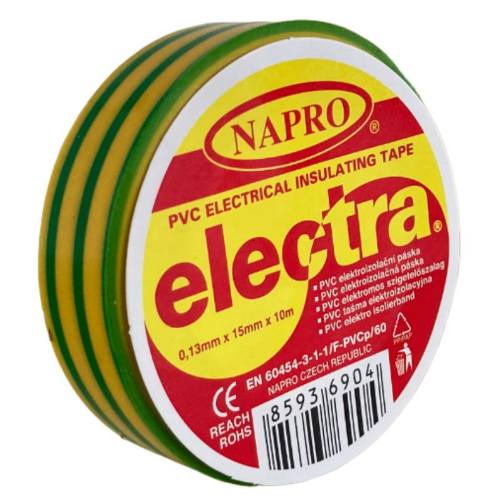 138384 - Páska elektroizolační PVC IZOVIAL, 10 m x 15 mm, žluto-zelená