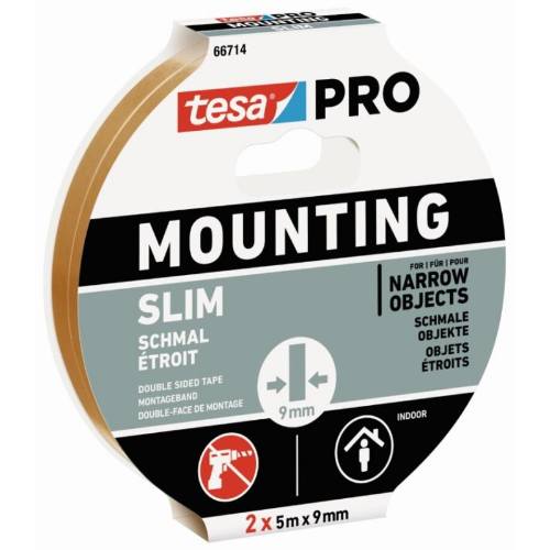 tesa PRO Mounting Slim– silná a tenká páska– ideální pro použití v interiéru u různých povrchů– oboustranná lepicí vrstva