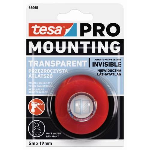 tesa PRO Mounting Transparent je trvanlivá, průsvitná a tenoučká lepicí montážní páska, oboustranná – výborně se hodí pro využití uvnitř i venku