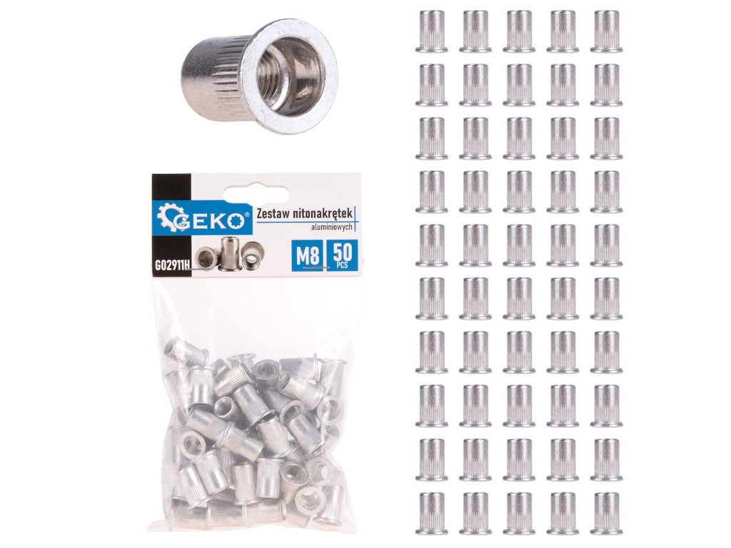 GEKO G02911H - Nýtovací matice M8 (1,0–3,5) hliníkové, 50 ks
