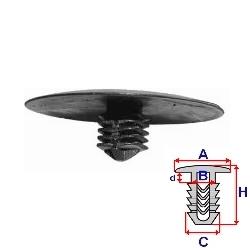 Tento díl lze objednat pouze po 10 kusech. rozměry: A = 29,8mm - B = 5,3mm - C = 6,5mm - H = 10,9mmbalení obsahuje: 10 kspopis: příchytka s hladkou hlavouumístění příchytky: exteriéraplikace: motorový prostorvýskyt: Honda, Opel