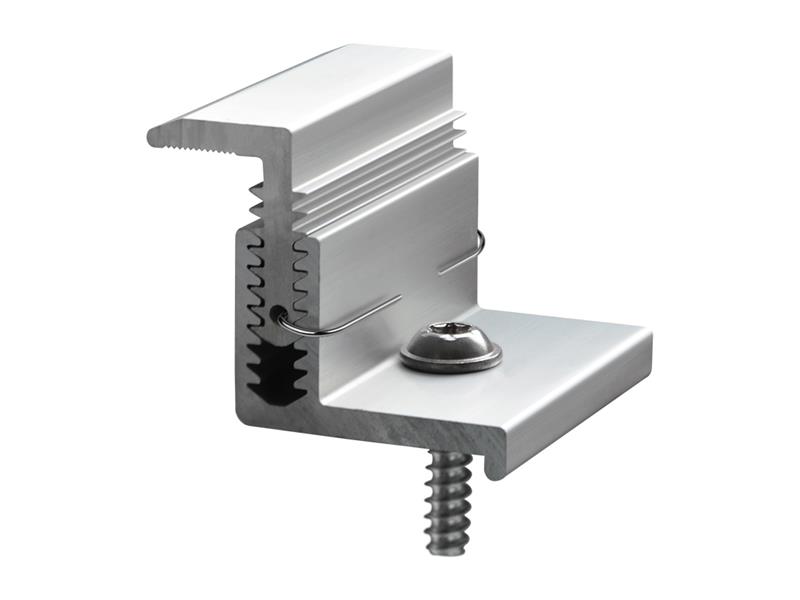 Sada koncových příchytek pro montáž 4 fotovoltaických panelů stříbrné barvy. Vertikální a horizontální instalace fotovoltaických panelů. Krabice obsahuje: 1) nastavitelné koncové příchytky - 4 ks 2) šrouby do plastu - 4 ks- materiál: hliník