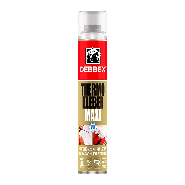 Je jednosložkové nízkoexpanzní polyuretanové lepidlo, speciálně vyvinuto pro vysoce efektivní lepení a montáž izolačních systémů ETICS. Vhodné i při vyplňování spár mezi tepelně izolačními deskami z materiálů EPS, XPS a z minerálních vláken (tzv. vaty) a při lepení soklového EPS-P nebo XPS. Výborná přilnavost na beton, omítku, zdivo, dřevo, polystyren apod. Při očekávaných poklesech nočních teplot pod 0 °C doporučujeme použít zimní variantu Thermo Kleber WINTER.