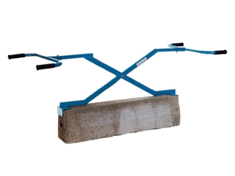 Nosič umožňuje snadné podélné uchopení a manipulaci s betonovými výrobky (obrubníky apod.).