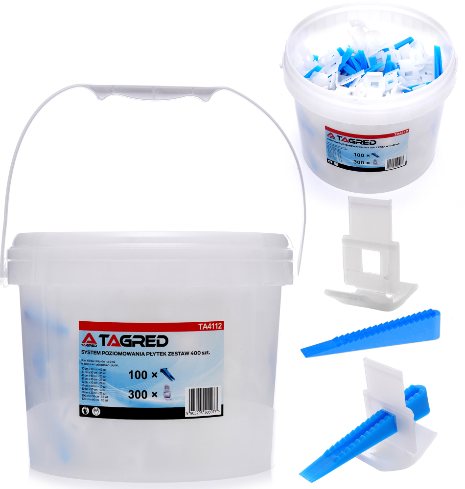 TAGRED TA4112 - Klíny a klipy na vyrovnání dlažby a obkladů, sada 400 ks,