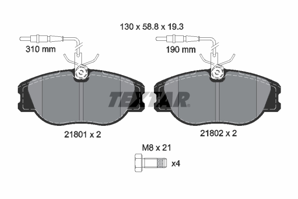 TEXTAR 2180101 Q+ - Sada brzdových destiček, vždy 4 kusy v sadě