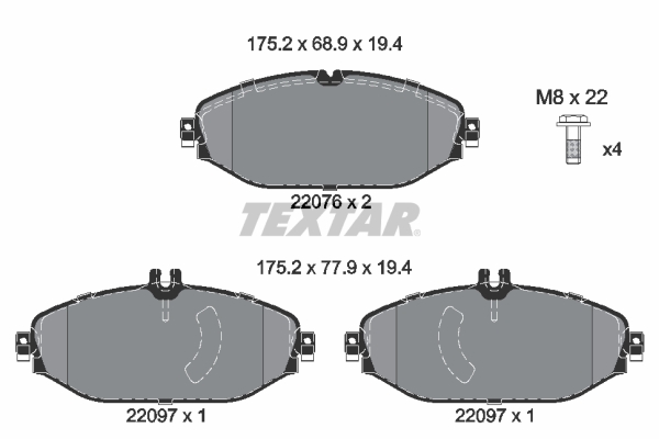 TEXTAR 2207601 Q+ - Sada brzdových destiček, vždy 4 kusy v sadě