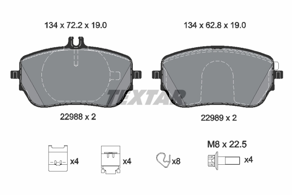 TEXTAR 2298801 - Sada brzdových destiček, vždy 4 kusy v sadě