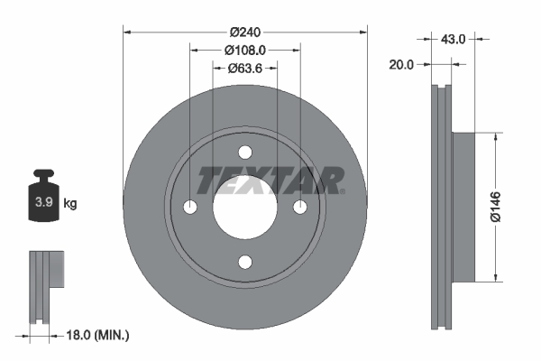 TEXTAR 92051003 PRO - Brzdový kotouč