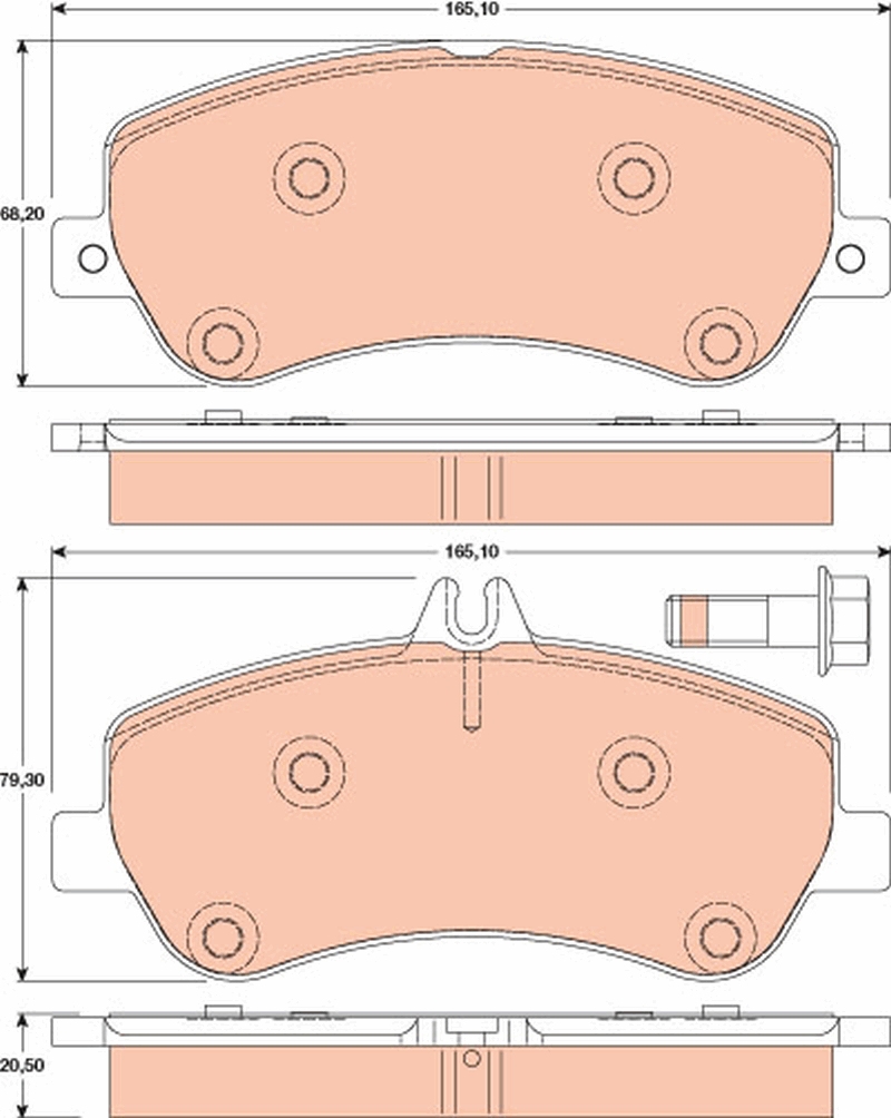 TRW GDB1798 - Sada brzdových destiček, vždy 4 kusy v sadě