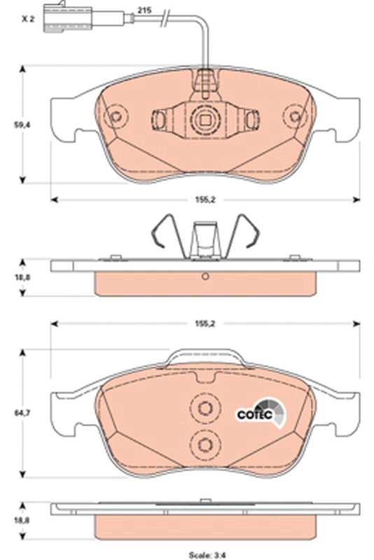 TRW GDB1873 COTEC - Sada brzdových destiček, vždy 4 kusy v sadě