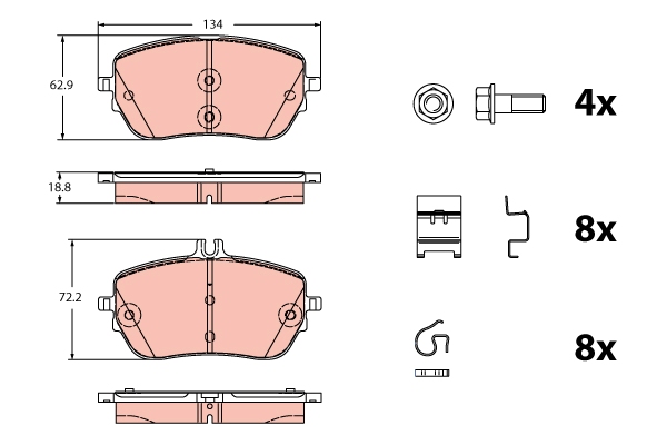 TRW GDB2330 - Sada brzdových destiček, vždy 4 kusy v sadě