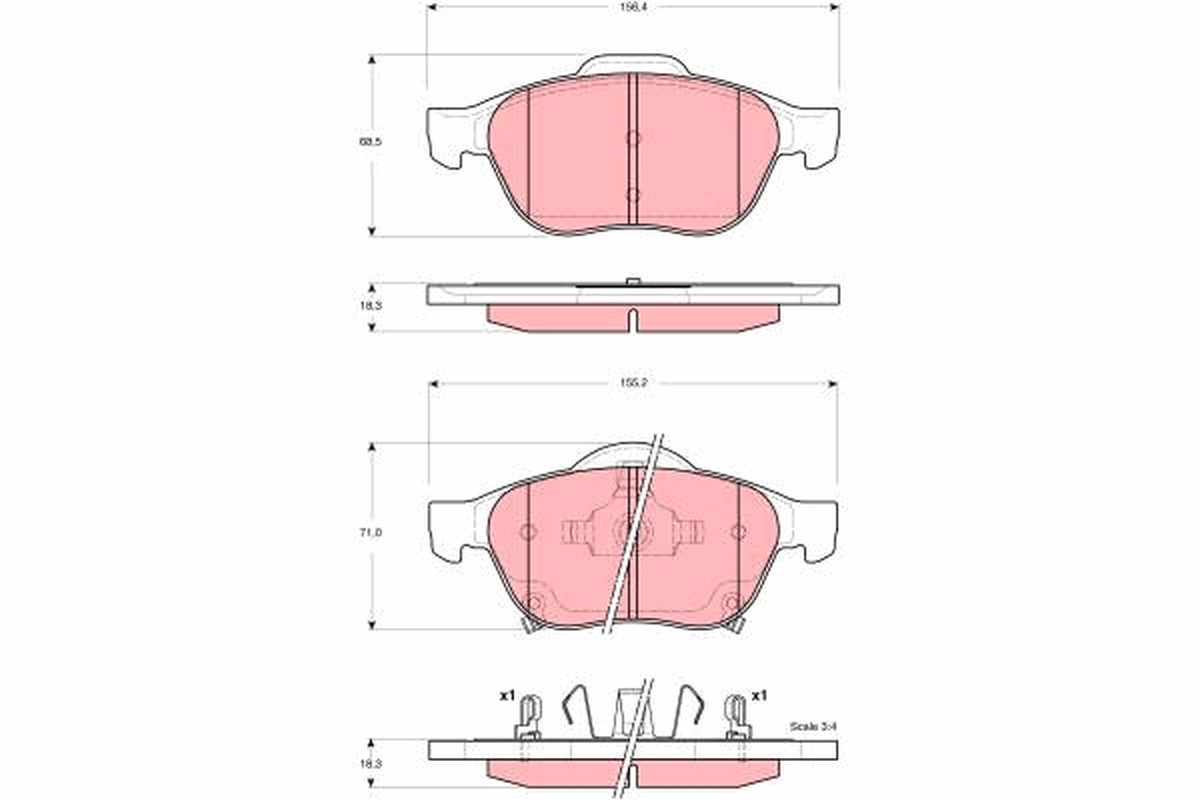 TRW GDB3335 - Sada brzdových destiček, vždy 4 kusy v sadě