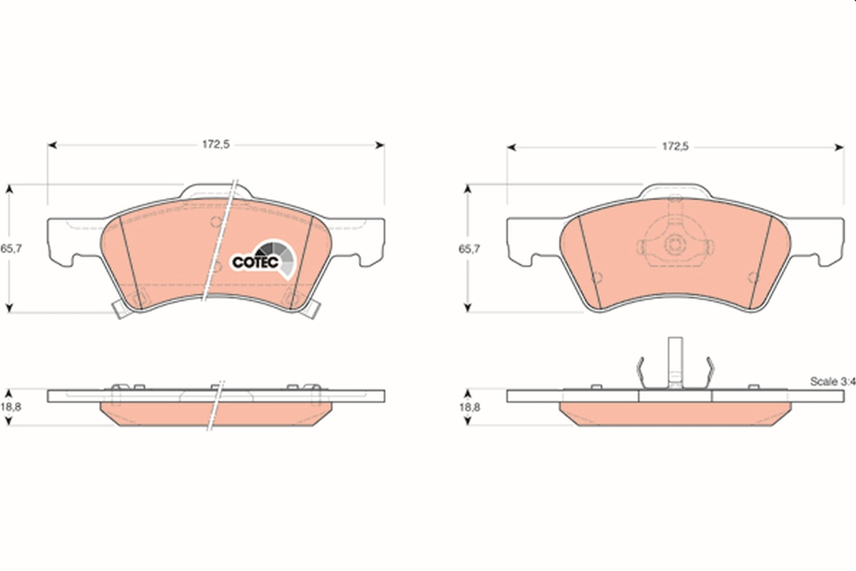TRW GDB4129 COTEC - Sada brzdových destiček, vždy 4 kusy v sadě