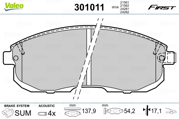 VALEO 301011 - Sada brzdových destiček, vždy 4 kusy v sadě