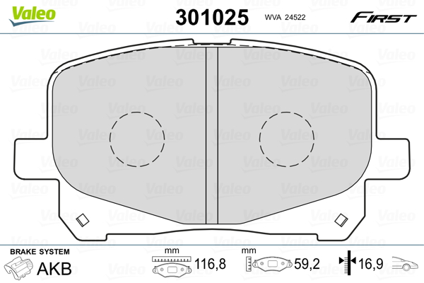 VALEO 301025 - Sada brzdových destiček, vždy 4 kusy v sadě