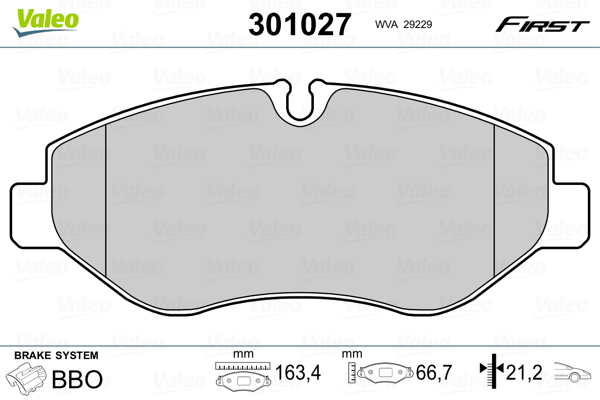 VALEO 301027 - Sada brzdových destiček, vždy 4 kusy v sadě