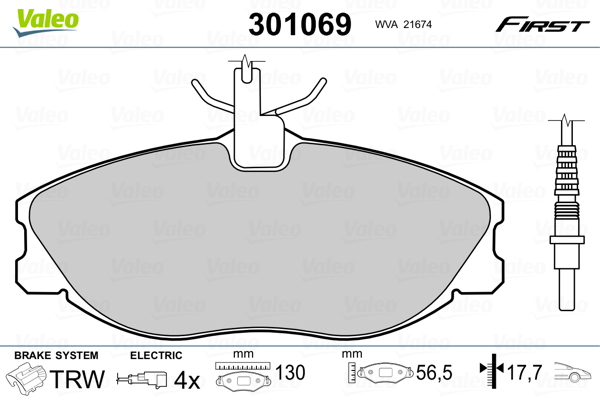 VALEO 301069 - Sada brzdových destiček, vždy 4 kusy v sadě
