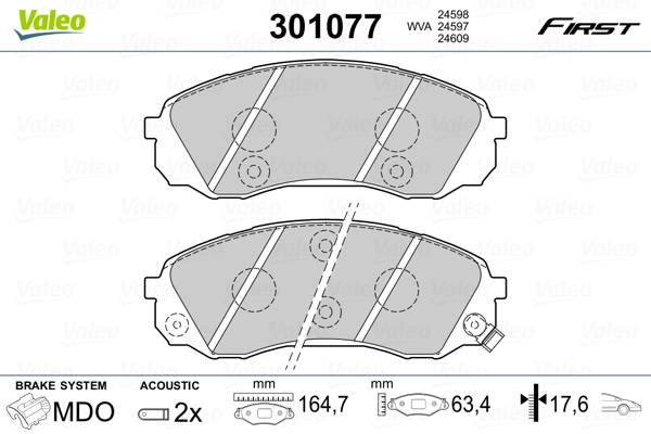 VALEO 301077 - Sada brzdových destiček, vždy 4 kusy v sadě