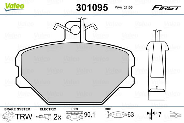 VALEO 301095 - Sada brzdových destiček, vždy 4 kusy v sadě
