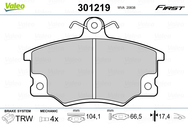 VALEO 301219 - Sada brzdových destiček, vždy 4 kusy v sadě